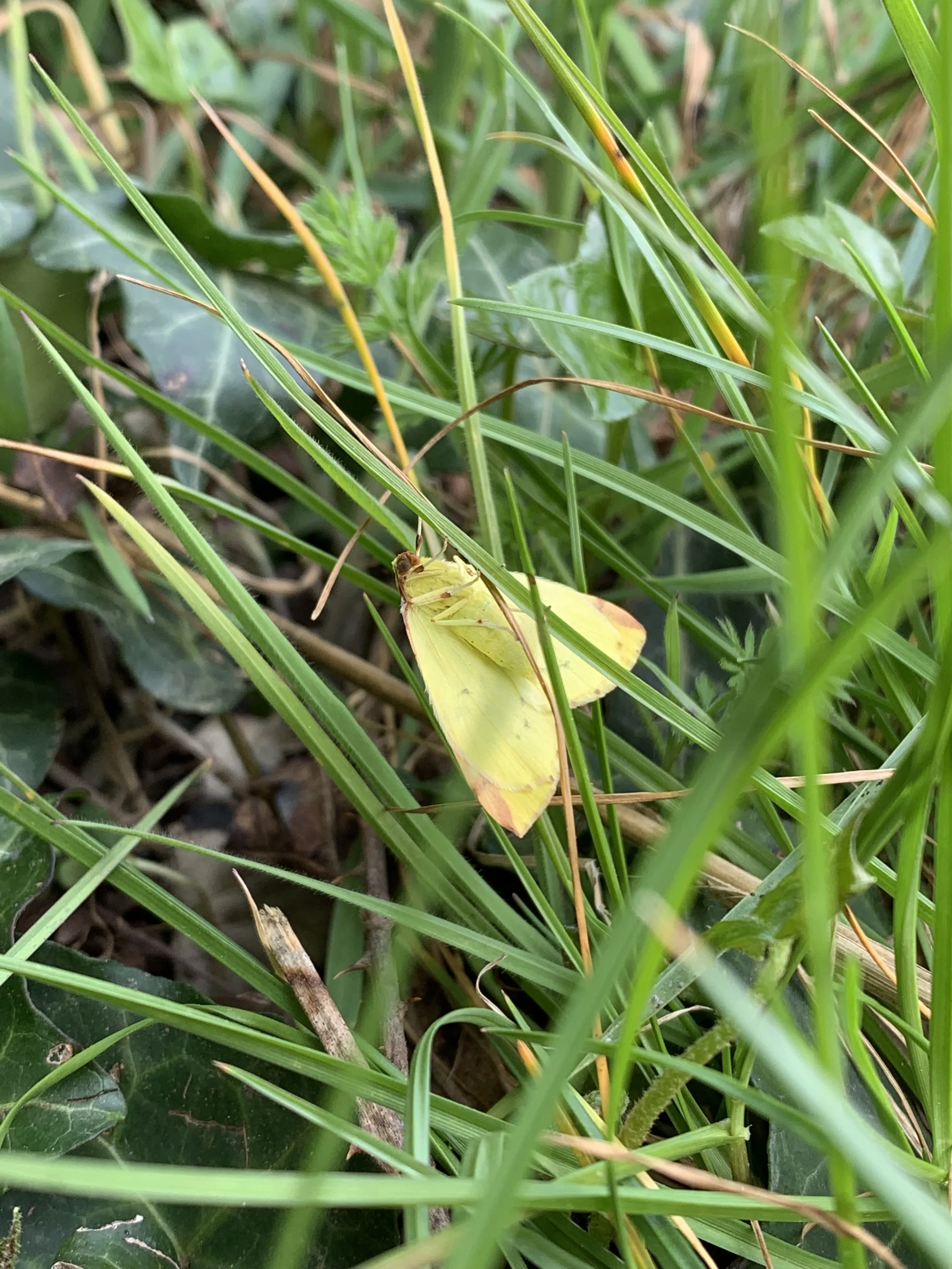 Brimstone moth spotted in the grass at Lymington Salt Marshes, New Forest, UK